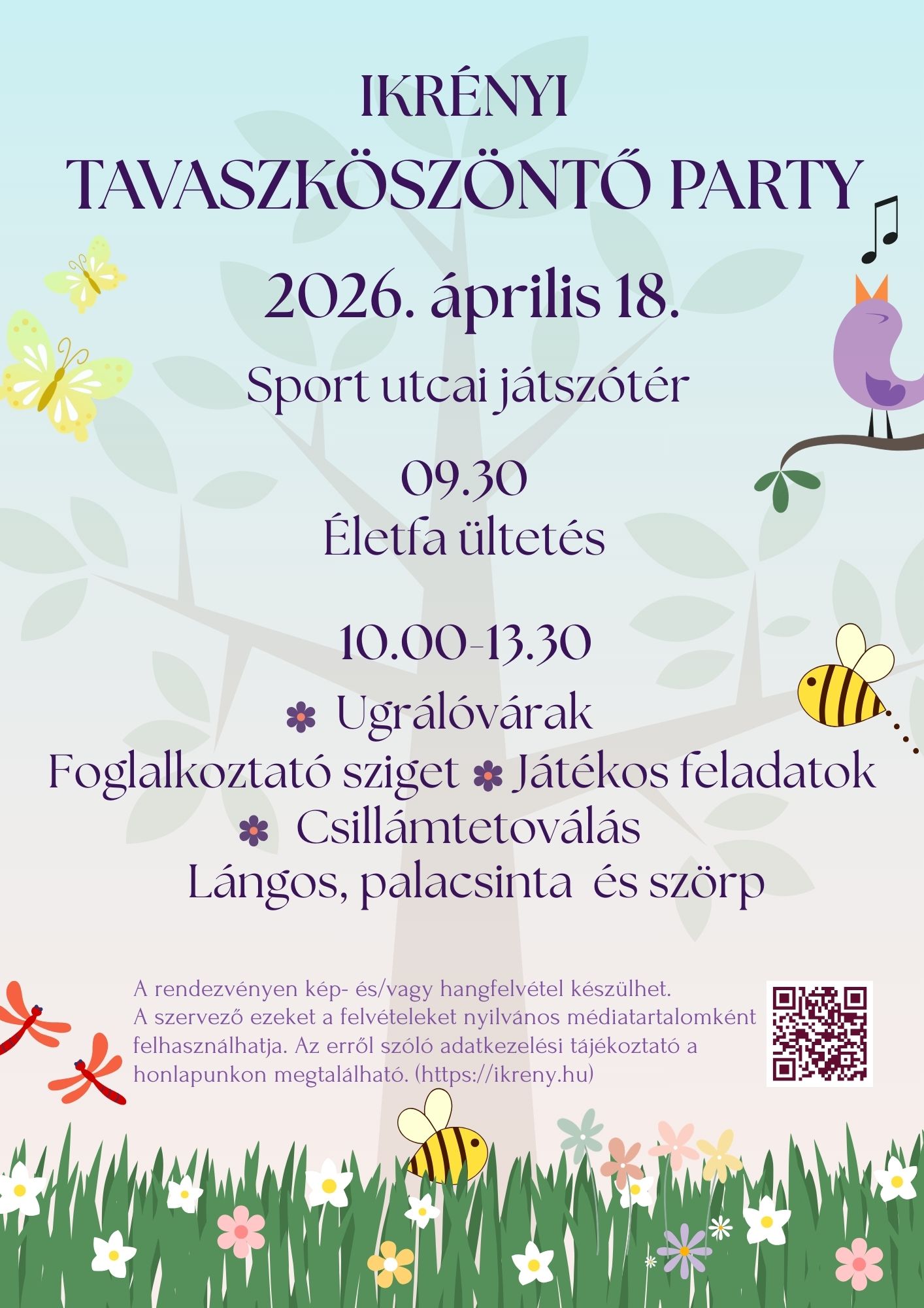 9.30 órától az elmúlt évben született ikrényi gyermekek köszöntéseként közösen életfát ültetünk.