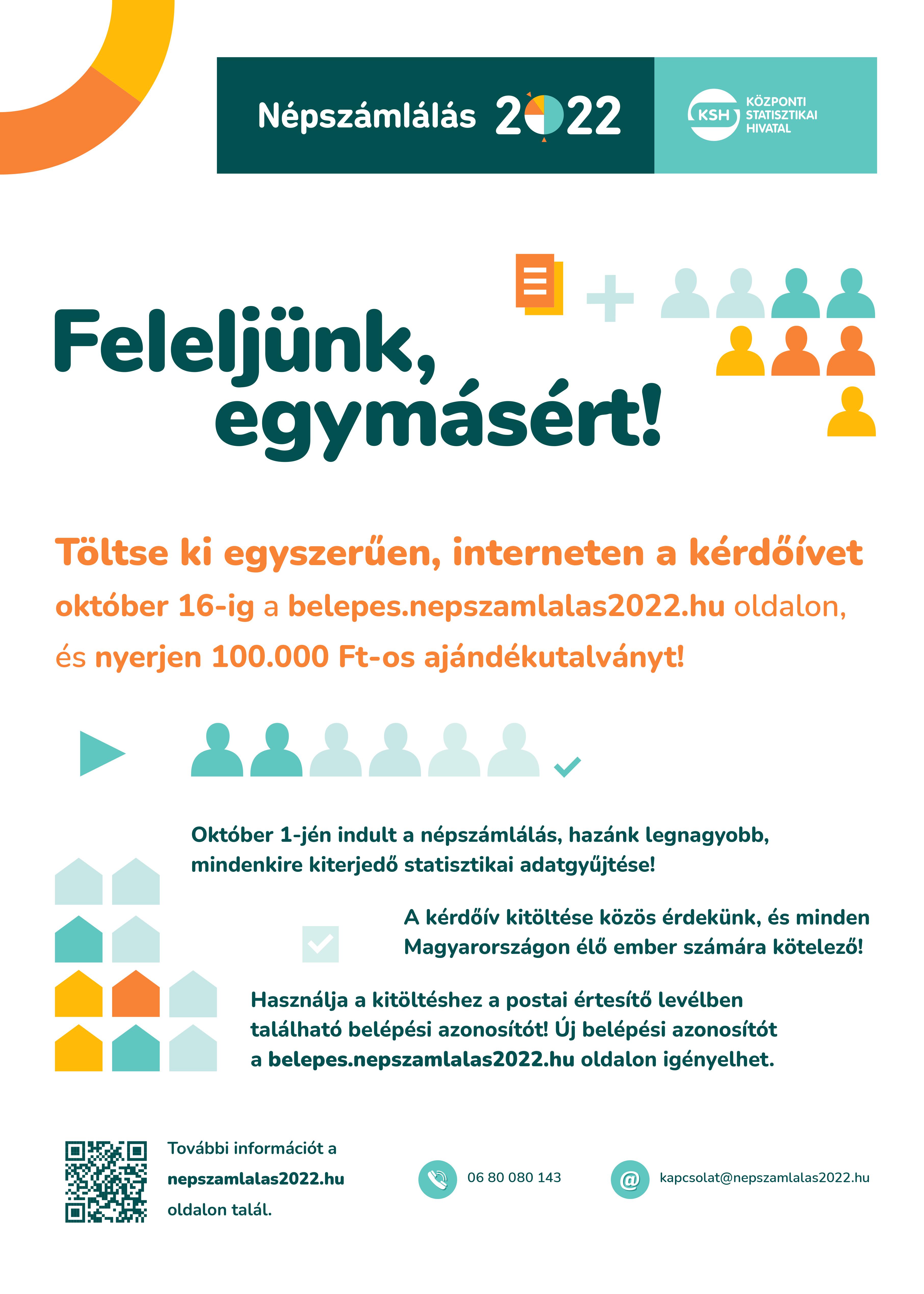Töltse ki egyszerűen, interneten a kérdőívet október 19-ig a belepes.nepszamlalas2022.hu oldalon és nyerjen 100.000 Ft-os ajándékutalványt!