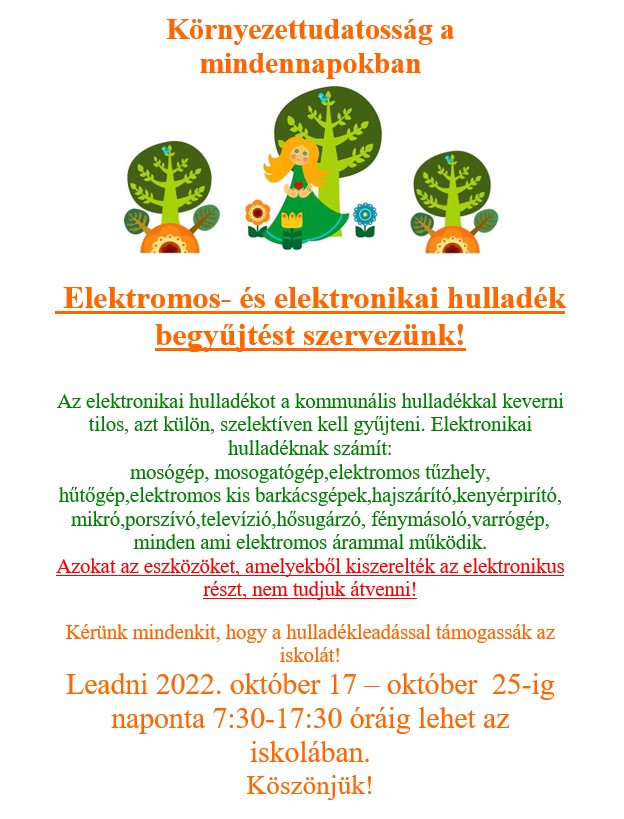 Kérjük, hogy az elektronikai hulladékleadással támogassák az ikrényi iskolát!